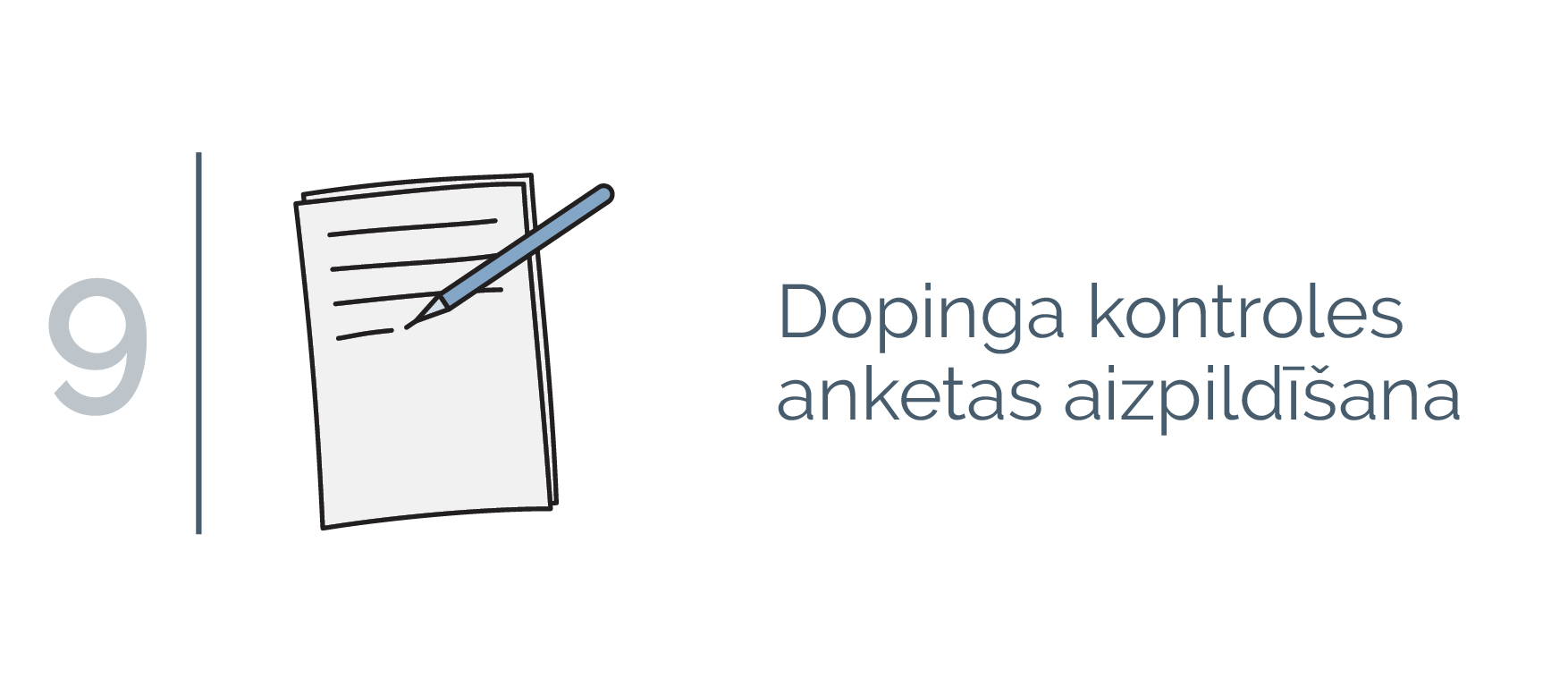 Paziņojumu ar saviem parakstiem dopinga kontroles anketā apliecina gan sportists, gan dopinga kontrolieris vai dopinga kontroles asistents.